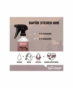 Mit dem bio-chem Polsterreiniger bekämpfst Du effektiv die hartnäckigsten Flecken durch Lebensmittel, Getränke oder tierischen Schmutz. Dank des Aktivschaums erzielst Du eine beeindruckende Tiefenreinigung Deiner Polster im Auto oder Haushalt und hellst gleichzeitig die Farben Deines Textils wieder auf. Durch die Reinigung neutralisierst Du ausserdem unangenehme Gerüche.