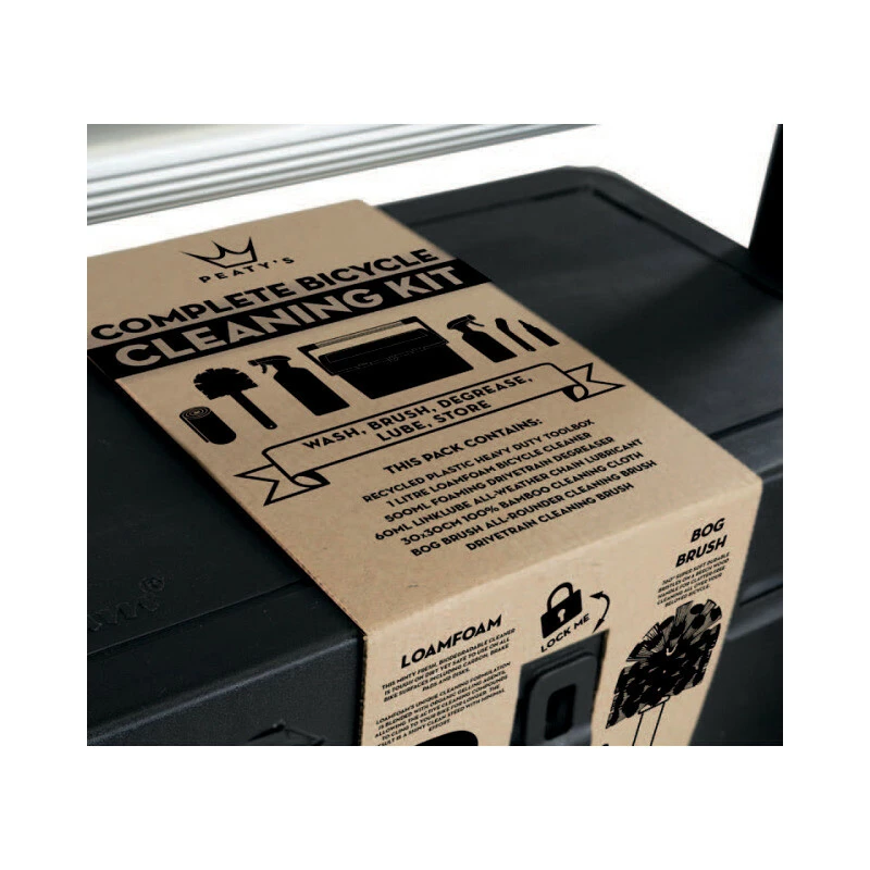 Weit entfernt von einer Ladung Produkte, die in einen billigen Eimer geworfen werden, bietet das komplette Fahrradreinigungsset von Peaty alle wichtigen Reinigungsprodukte in einer erstklassigen Aufbewahrungslösung. Dieses Kit aus recyceltem Kunststoff und mit einem stabilen Tragegriff aus Aluminium enthält alle wichtigen Produkte, die Sie benötigen, um von schmutzig bis renntauglich zu werden.