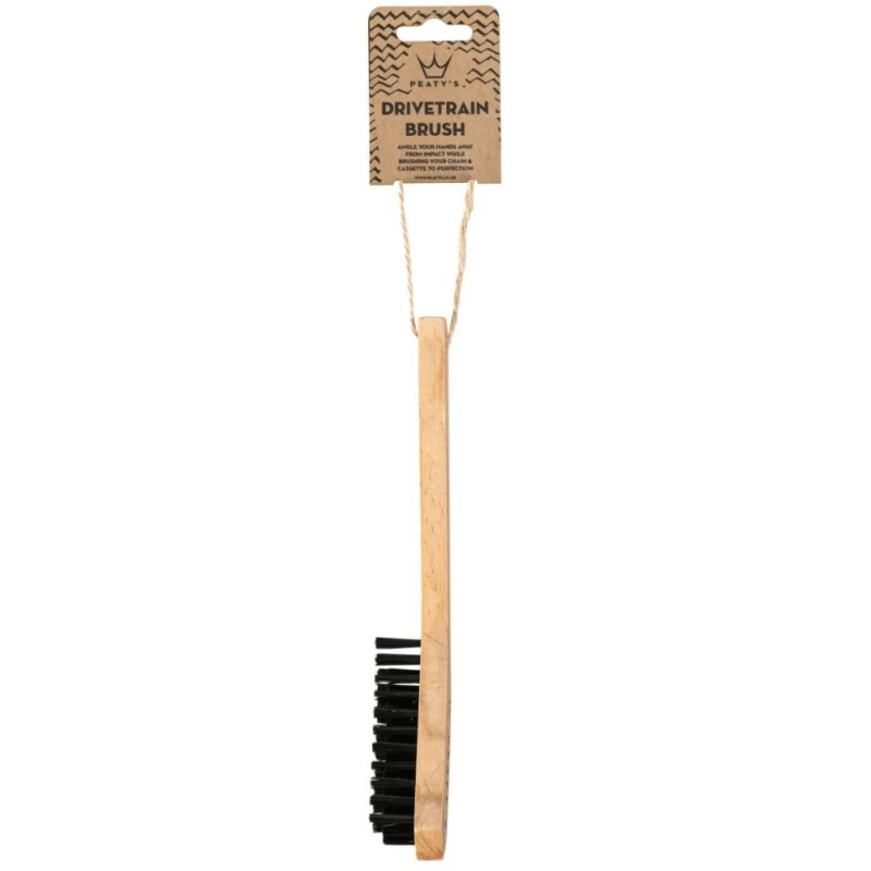 Schon mal beim Putzen mit dem Fingerknöchel auf einen Kassettenzahn geschlagen? Das tut weh! Um blutenden Knöcheln entgegenzuwirken, bewegt unser einzigartiger abgewinkelter Kopf Ihre Hand beim Schrubben weg von der scharfen, sich drehenden Kassette. Die steifen, langlebigen Borsten der Peaty Drivetrain Brush haben einen niedrigen Mittelkanal, in den die Kette hineinpasst. Dies sorgt für steifere Borsten in der Mitte für hartes Schrubben, während die meisselgeschliffene Spitze dazu beiträgt, den Dreck von den Schalträdern zu kratzen.