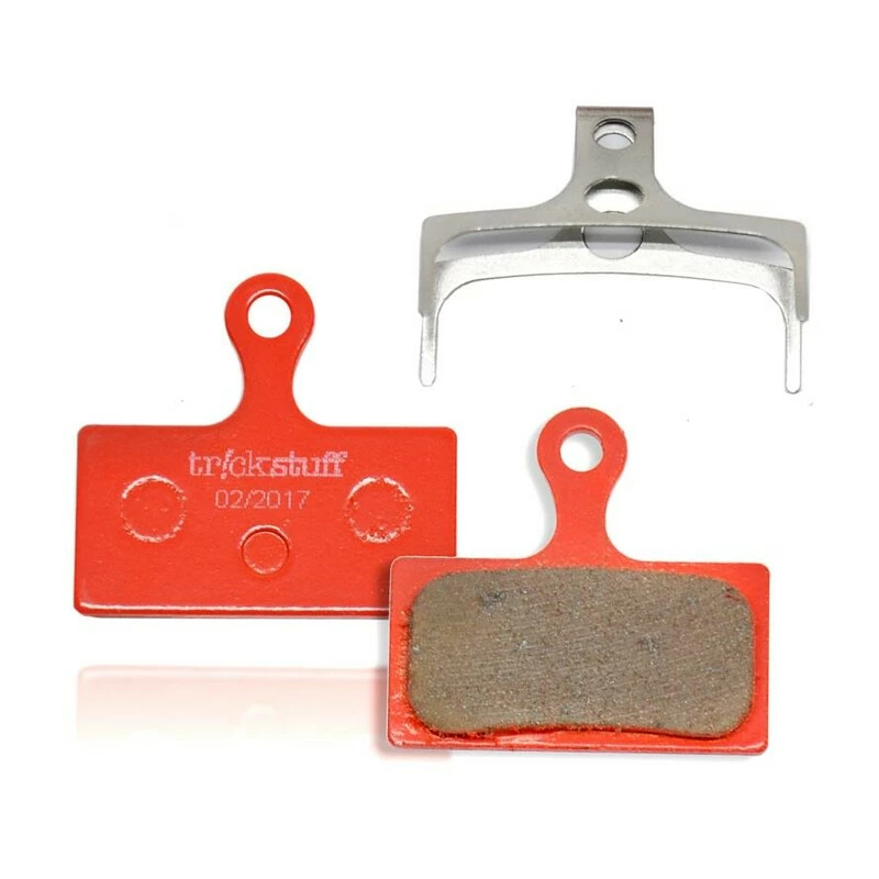 Die Trickstuff Bremsbeläge werden aus organischen Materialien hergestellt und mit Kunstharz gebunden. Organische Beläge haben den großen Vorteil, ein thermischer Isolator zu sein, was die Dichtungen im Bremssattel vor Überhitzung schont. Um die Bremseigenschaften zu verbessern und den Abrieb zu verringern enthält der Belag geringe Mengen von Metallpartikeln. Trotzdem sind die Beläge größtenteils organisch, man könnte auch sagen, sie sind halbmetallisch. Diese Mischung ergibt optimale Trocken- und Nass-Bremswerte und hält außerdem den Verschleiß der Scheibe gering.