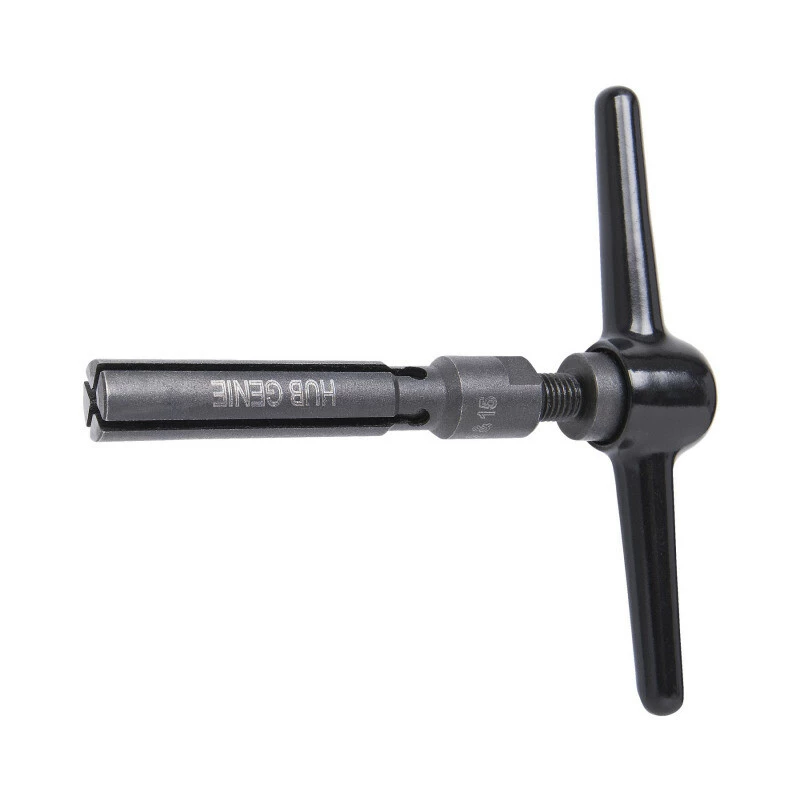 Das Gerät stellt eine innovative Art für die Entfernung der Endkappen der Nabe dar und wird beim Servicieren oder der Beabreitung der Nabe auf einen neuen Standard, verwendet. Die Erweiterungen des Mechanismus des Geräts packen gleichmässig die Endkappe der Nabe an der gesamten Innenrändelung an und ermöglichen somit eine leichte Entfernung dieser aus der Achse der Nabe mit einem leichten Ziehen. Als Unterschied zu der gewöhnlichen Art der Entfernung der Endkappen der Nabe, werden Sie mit diesem Gerät die Nabe oder die Endkappen der Nabe nicht beschädigen. Das Gerät ist verfügbar in zwei Dimensionen; die kleinere Version funktioniert auf einer Nabe mit 12 und 15 mm Achse, die grössere ist aber kompatibel mit Naben, die eine 20 mm Achse verwenden. Beide Versionen des Geräts zeichnen sich durch den ergonomischen Gummigriff aus, das eine leichtere Handhabung mit dem Gerät ermöglicht.